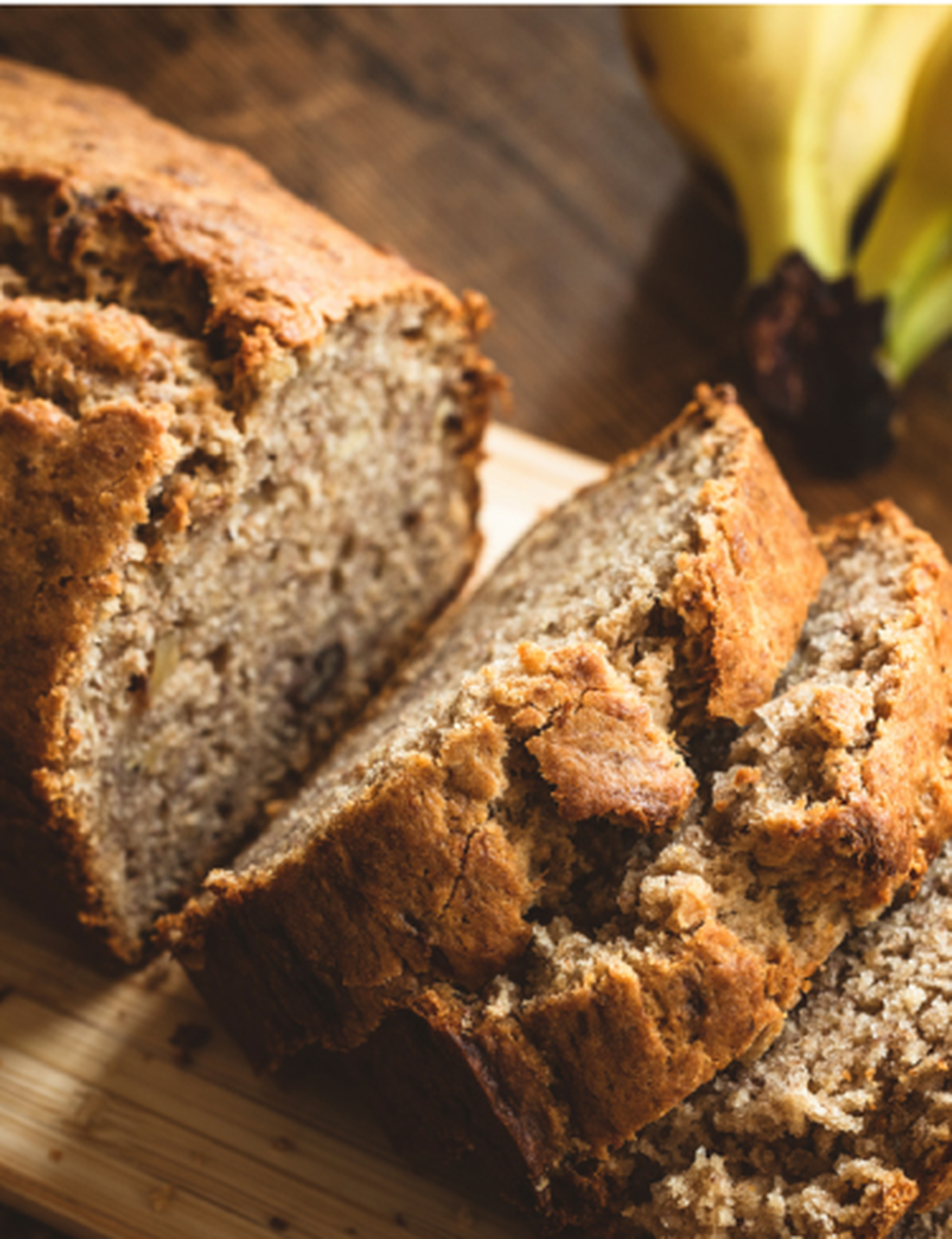 Voedingswaarde van 1 plak bananenbrood: 93 kcal, 13,5g koolhydraten, 4g eiwit en 1g vet.