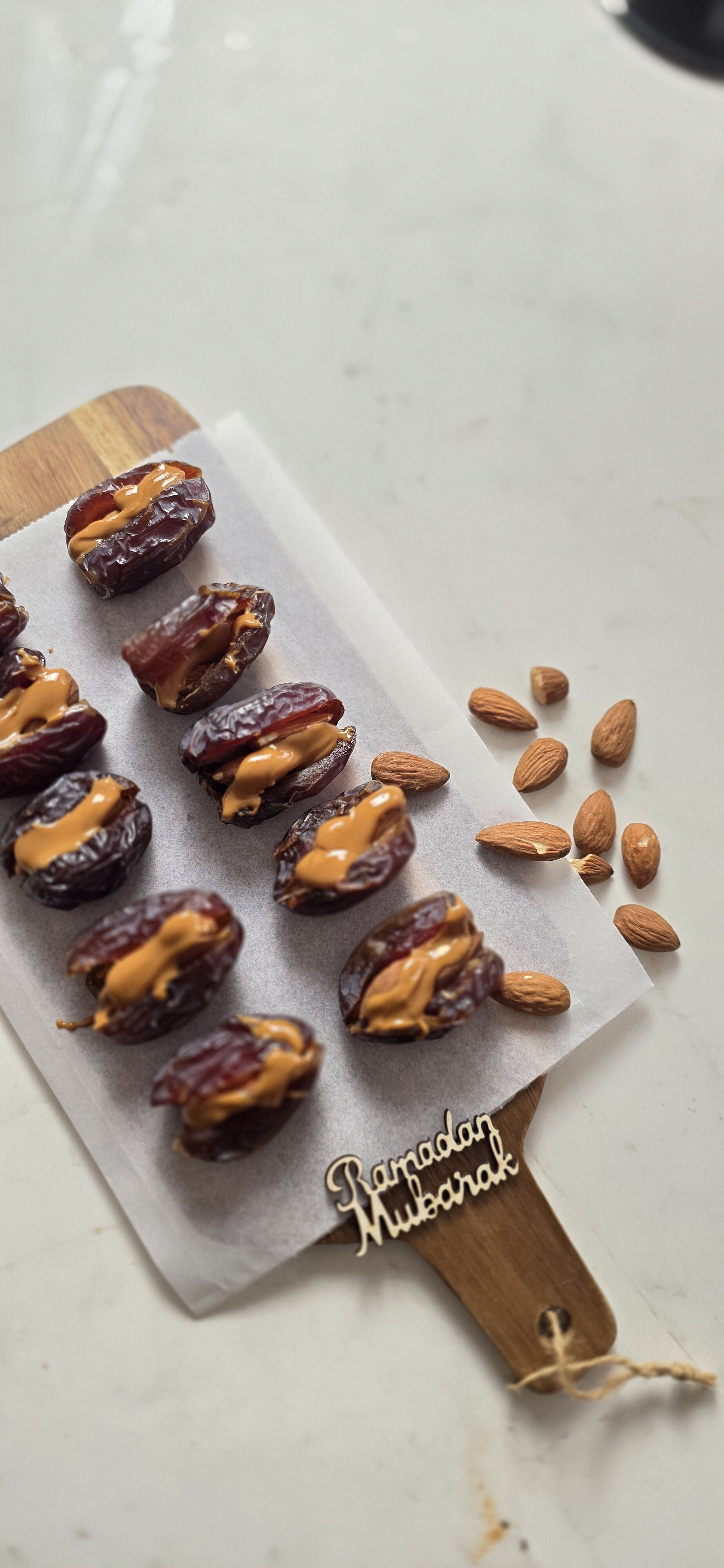Vul elke dadel met twee amandelen.